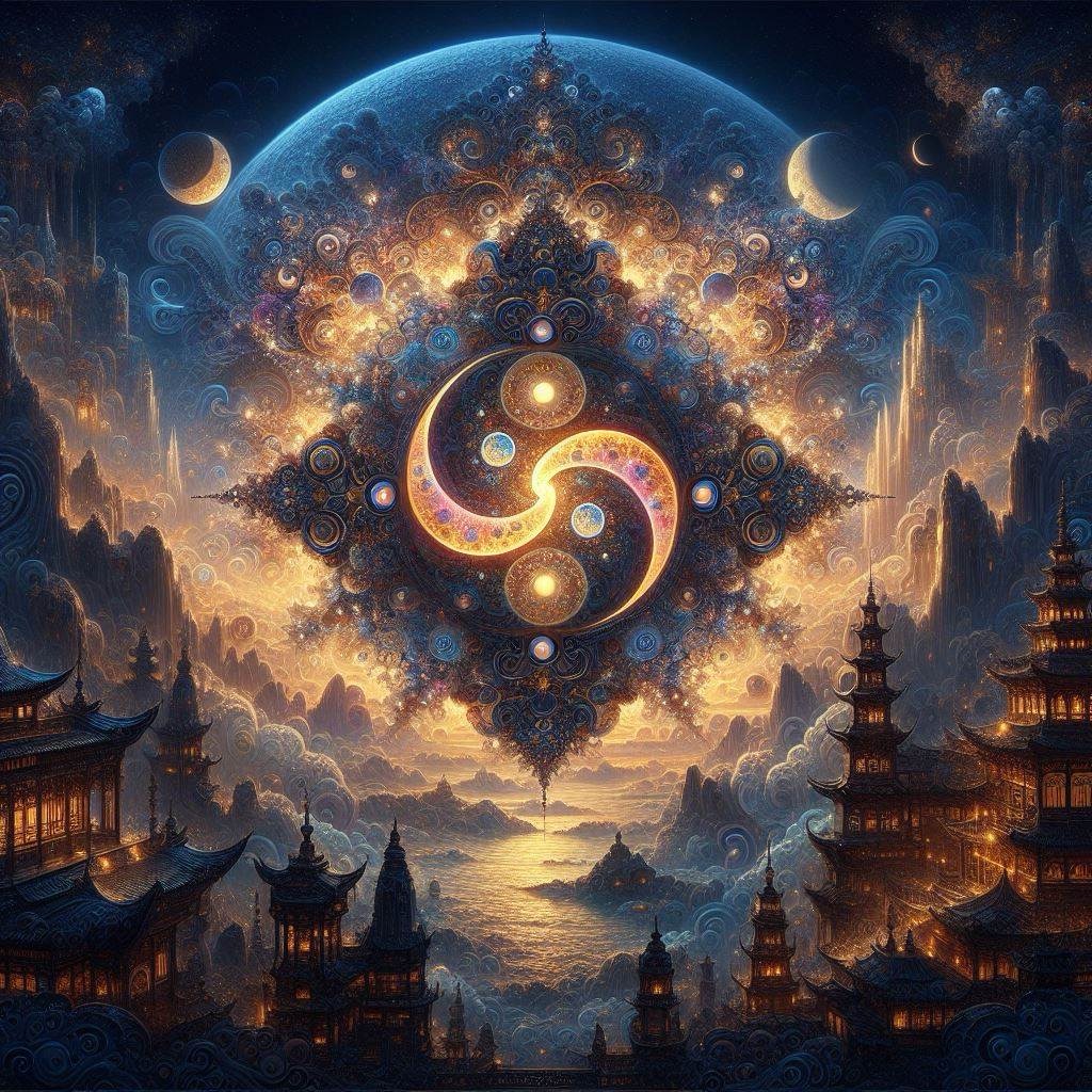 El chi como energía universal tiene dos partes igual de importantes. El Yin y el Yang. La energía de creación y la energía de destrucción. Estas energías están separadas por una fuerza mas importante e invisible, lo que esta entre todas las cosas que se parece al espacio entre el zócalo y el muro, entre el tronco y la raíz o el cachete y la nariz. Es el pegamento que une al mundo y la verdad y la belleza suprema. El tao que puede ser nombrado no es el verdadero tao, el nombre que se le puede dar no es su verdadero nombre. La respuestas las da el tao, que no es un intermedio entre el yin y el yang si no que lo que los abarca y forma, clasifica y divide.